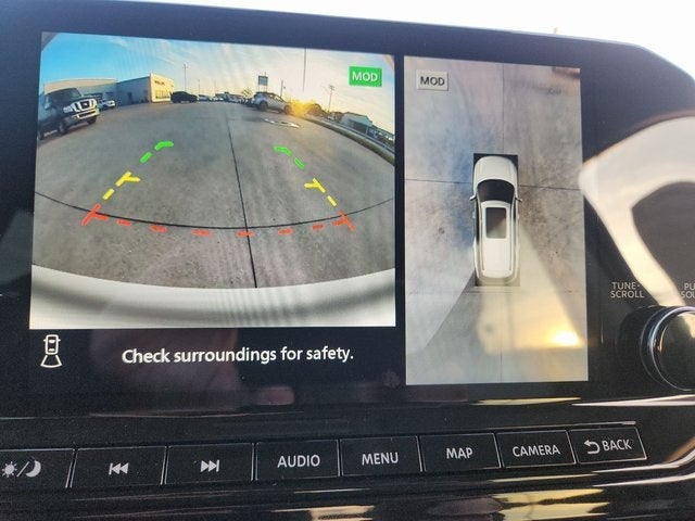 3rd row seats: bench, 4-Wheel Disc Brakes, 6 Speakers, ABS brakes, Air Conditioning, Alloy wheels, AM/FM radio: SiriusXM, Auto High-beam Headlights, Auto-dimming Rear-View mirror, Automatic temperature control, Brake assist, Bumpers: body-color, Delay-off headlights, Driver door bin, Driver vanity mirror, Dual front impact airbags, Dual front side impact airbags, Electronic Stability Control, Emergency communication system, Exterior Parking Camera Rear, Four wheel independent suspension, Front anti-roll bar, Front Bucket Seats, Front Center Armrest, Front dual zone A/C, Front reading lights, Fully automatic headlights, Garage door transmitter: HomeLink, Heated door mirrors, Heated Front Bucket Seats, Heated front seats, Heated steering wheel, Illuminated entry, Knee airbag, Leather steering wheel, Leather-Appointed Seating Surfaces, Low tire pressure warning, Navigation system: NissanConnect with Navigation and Services, NissanConnect featuring Apple CarPlay and Android Auto, NissanConnect with Navigation and Services, Occupant sensing airbag, Outside temperature display, Overhead airbag, Overhead console, Panic alarm, Passenger door bin, Passenger vanity mirror, Power door mirrors, Power driver seat, Power Liftgate, Power passenger seat, Power steering, Power windows, Radio data system, Radio: AM/FM Audio System, Rear air conditioning, Rear anti-roll bar, Rear reading lights, Rear seat center armrest, Rear side impact airbag, Rear window defroster, Rear window wiper, Reclining 3rd row seat, Remote keyless entry, Security system, Speed control, Speed-sensing steering, Split folding rear seat, Spoiler, Steering wheel mounted audio controls, Tachometer, Telescoping steering wheel, Tilt steering wheel, Traction control, Trip computer, Turn signal indicator mirrors, Variably intermittent wipers, and Wheels: 18 x 8J Machined Alloy.