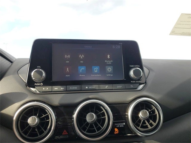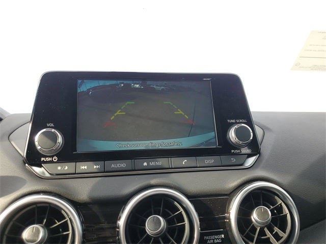 4 Speakers, ABS brakes, Air Conditioning, AM/FM radio, Auto High-beam Headlights, Blind Spot Warning, Body Colored Splash Guards (4-Piece), Brake assist, Bumpers: body-color, Carpeted Floor Mats with Trunk Mat, Clear Rear Bumper Protector, Cloth Seat Trim, Delay-off headlights, Driver door bin, Driver vanity mirror, Dual front impact airbags, Dual front side impact airbags, Electronic Stability Control, Four wheel independent suspension, Front anti-roll bar, Front Bucket Seats, Front Center Armrest, Front reading lights, Fully automatic headlights, Illuminated entry, Knee airbag, Low tire pressure warning, NissanConnect featuring Apple CarPlay and Android Auto, Occupant sensing airbag, Outside temperature display, Overhead airbag, Overhead console, Panic alarm, Passenger door bin, Passenger vanity mirror, Power door mirrors, Power steering, Power windows, Radio data system, Radio: AM/FM with RDS/MP3/Aux-in, Rear anti-roll bar, Rear Parking Sensors, Rear side impact airbag, Rear window defroster, Remote keyless entry, Speed control, Speed-sensing steering, Split folding rear seat, Steering wheel mounted audio controls, Tachometer, Telescoping steering wheel, Tilt steering wheel, Traction control, Trip computer, Variably intermittent wipers, and Wheels: 16 Steel with Full Covers.