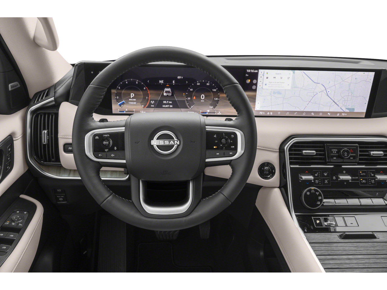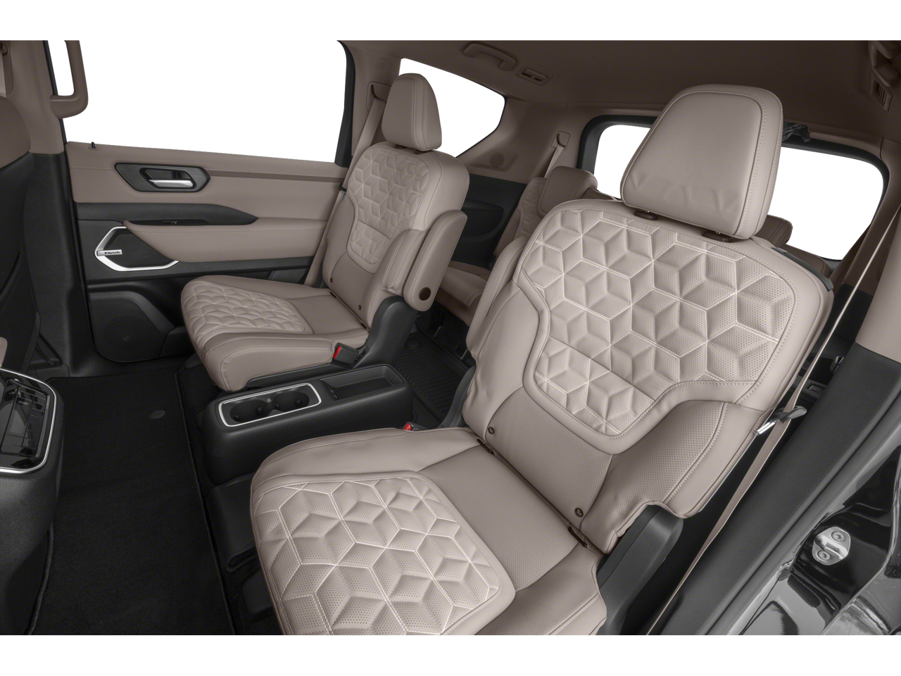 Convenience Package, 12 Speakers, 3rd row seats: split-bench, 4-Wheel Disc Brakes, ABS brakes, Air Conditioning, Alloy wheels, AM/FM radio: SiriusXM w/360L, Anti-whiplash front head restraints, Apple CarPlay/Android Auto, Auto High-beam Headlights, Auto tilt-away steering wheel, Auto-dimming door mirrors, Auto-dimming Rear-View mirror, Auto-leveling suspension, Automatic temperature control, Brake assist, Bumpers: body-color, Carpeted Floor Mats with Captain Chairs, Center Front Spoiler, Climate Controlled Heated and Ventilated Front Seats, Compass, Cross Bars, Delay-off headlights, Driver door bin, Driver vanity mirror, Dual front impact airbags, Dual front side impact airbags, Electronic Stability Control, Emergency communication system: NissanConnect Services, Four wheel independent suspension, Front anti-roll bar, Front Bucket Seats, Front Center Armrest, Front dual zone A/C, Front fog lights, Front reading lights, Fully automatic headlights, Garage door transmitter: HomeLink, Genuine wood dashboard insert, Heated door mirrors, Heated front seats, Heated rear seats, Heated steering wheel, HVAC memory, Illuminated entry, Illuminated Kick Plates, Knee airbag, Leather steering wheel, Low tire pressure warning, Memory seat, Navigation system: Google Maps, Occupant sensing airbag, Outside temperature display, Overhead airbag, Overhead console, Panic alarm, Passenger door bin, Passenger vanity mirror, Power door mirrors, Power driver seat, Power Liftgate, Power moonroof, Power passenger seat, Power steering, Power windows, Quilted Leather Seat Trim, Radio: NissanConnect with SiriusXM 360L, Rain sensing wipers, Rear air conditioning, Rear anti-roll bar, Rear Bumper Protector, Rear reading lights, Rear window defroster, Rear window wiper, Reclining 3rd row seat, Remote keyless entry, Security system, Speed control, Speed-sensing steering, Speed-Sensitive Wipers, Splash Guards, Split folding rear seat, Spoiler, Steering wheel memory, Steering wheel mounted audio controls, Tachometer, Telescoping steering wheel, Tilt steering wheel, Traction control, Trip computer, Turn signal indicator mirrors, Variably intermittent wipers, Ventilated front seats, Voltmeter, and Wheels: 20 x 8.5J Machined and Painted Alloy.