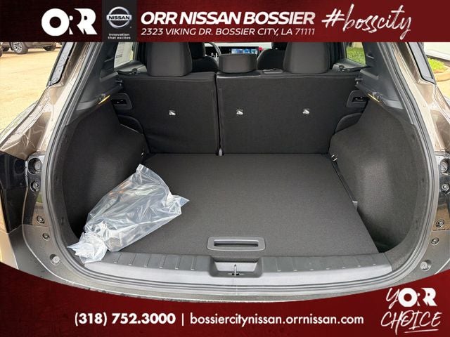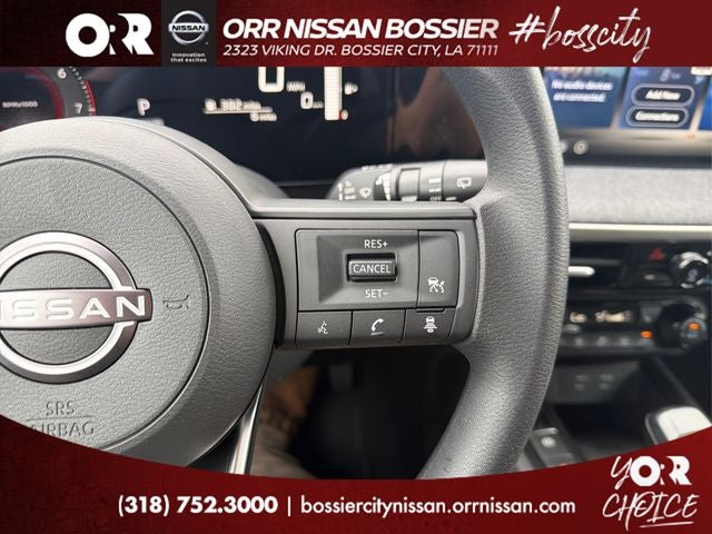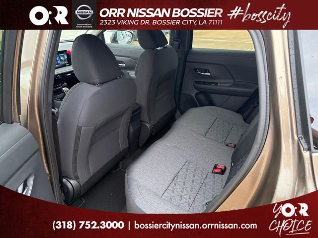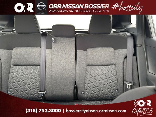 4 Speakers, 4-Wheel Disc Brakes, ABS brakes, Air Conditioning, AM/FM radio, Auto High-beam Headlights, Automatic temperature control, Blind Spot Warning, Brake assist, Bumpers: body-color, Cloth Seat Trim, Driver door bin, Driver vanity mirror, Dual front impact airbags, Dual front side impact airbags, Electronic Stability Control, Emergency communication system, Exterior Parking Camera Rear, Front anti-roll bar, Front Bucket Seats, Front Center Armrest, Front reading lights, Front wheel independent suspension, Fully automatic headlights, Illuminated entry, Knee airbag, Low tire pressure warning, NissanConnect featuring Apple CarPlay and Android Auto, Occupant sensing airbag, Outside temperature display, Overhead airbag, Panic alarm, Passenger door bin, Passenger vanity mirror, Power door mirrors, Power steering, Power windows, Radio data system, Radio: AM/FM/SiriusXM Audio System, Rear anti-roll bar, Rear reading lights, Rear side impact airbag, Rear window defroster, Rear window wiper, Remote keyless entry, Security system, Speed control, Speed-sensing steering, Split folding rear seat, Spoiler, Sport steering wheel, Steering wheel mounted audio controls, Tachometer, Telescoping steering wheel, Tilt steering wheel, Traction control, Trip computer, Variably intermittent wipers, and Wheels: 17 Steel Flex with Full Covers.