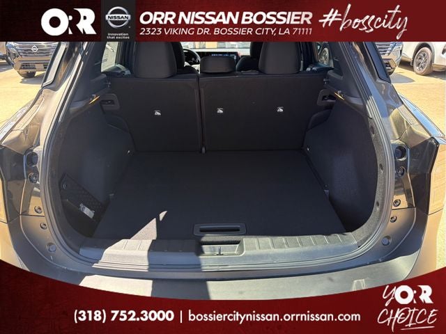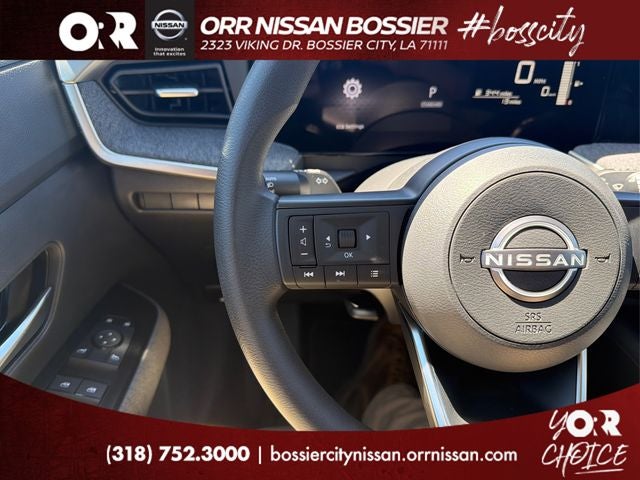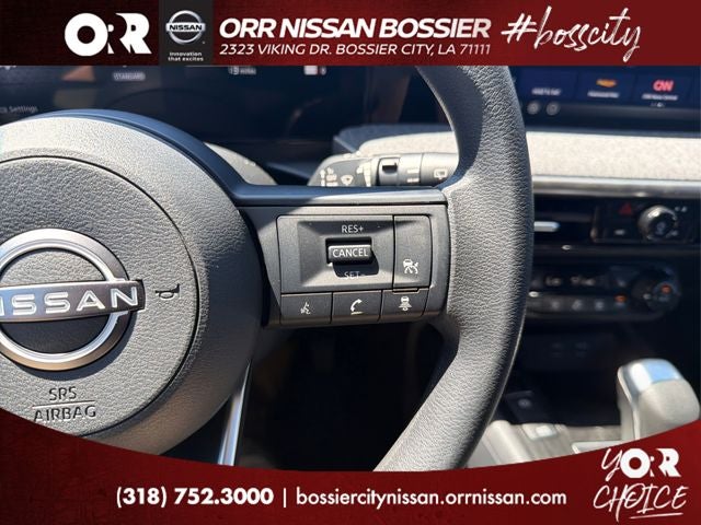 Cold Weather Package (Heated Front Seats, Heated Mirrors, and Rear Floor Heater Ducts), 4 Speakers, 4-Wheel Disc Brakes, ABS brakes, Air Conditioning, AM/FM radio, Auto High-beam Headlights, Automatic temperature control, Blind Spot Warning, Brake assist, Bumpers: body-color, Carpeted Floor Mats and Underfloor Protector, Cloth Seat Trim, Crossbars, Driver door bin, Driver vanity mirror, Dual front impact airbags, Dual front side impact airbags, Electronic Stability Control, Emergency communication system, Exterior Parking Camera Rear, Front anti-roll bar, Front Bucket Seats, Front Center Armrest, Front reading lights, Front wheel independent suspension, Fully automatic headlights, Illuminated entry, Knee airbag, Low tire pressure warning, NissanConnect featuring Apple CarPlay and Android Auto, Occupant sensing airbag, Outside temperature display, Overhead airbag, Panic alarm, Passenger door bin, Passenger vanity mirror, Power door mirrors, Power steering, Power windows, Radio data system, Radio: AM/FM/SiriusXM Audio System, Rear anti-roll bar, Rear reading lights, Rear side impact airbag, Rear window defroster, Rear window wiper, Remote keyless entry, Security system, Speed control, Speed-sensing steering, Splash Guards, Split folding rear seat, Spoiler, Sport steering wheel, Steering wheel mounted audio controls, Tachometer, Telescoping steering wheel, Tilt steering wheel, Traction control, Trip computer, Variably intermittent wipers, and Wheels: 17 Steel Flex with Full Covers.