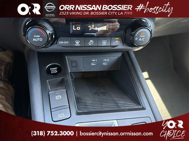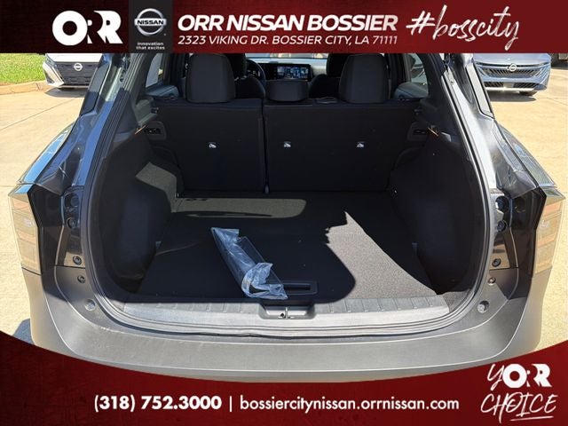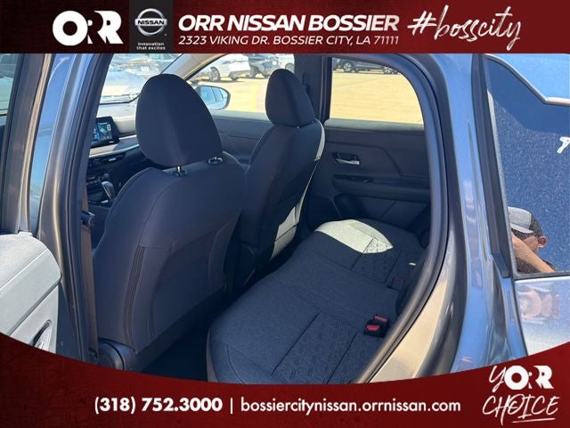 4 Speakers, 4-Wheel Disc Brakes, ABS brakes, Air Conditioning, AM/FM radio, Auto High-beam Headlights, Automatic temperature control, Blind Spot Warning, Brake assist, Bumpers: body-color, Cloth Seat Trim, Driver door bin, Driver vanity mirror, Dual front impact airbags, Dual front side impact airbags, Electronic Stability Control, Emergency communication system, Exterior Parking Camera Rear, Front anti-roll bar, Front Bucket Seats, Front Center Armrest, Front reading lights, Front wheel independent suspension, Fully automatic headlights, Illuminated entry, Knee airbag, Low tire pressure warning, NissanConnect featuring Apple CarPlay and Android Auto, Occupant sensing airbag, Outside temperature display, Overhead airbag, Panic alarm, Passenger door bin, Passenger vanity mirror, Power door mirrors, Power steering, Power windows, Radio data system, Radio: AM/FM/SiriusXM Audio System, Rear anti-roll bar, Rear reading lights, Rear side impact airbag, Rear window defroster, Rear window wiper, Remote keyless entry, Security system, Speed control, Speed-sensing steering, Split folding rear seat, Spoiler, Sport steering wheel, Steering wheel mounted audio controls, Tachometer, Telescoping steering wheel, Tilt steering wheel, Traction control, Trip computer, Variably intermittent wipers, and Wheels: 17 Steel Flex with Full Covers.