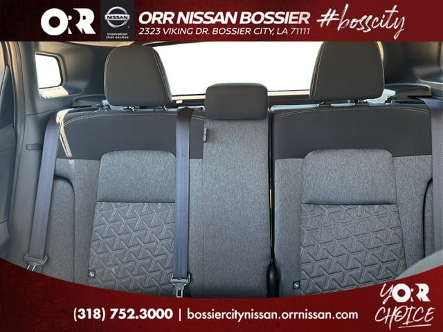 4 Speakers, 4-Wheel Disc Brakes, ABS brakes, Air Conditioning, AM/FM radio, Auto High-beam Headlights, Automatic temperature control, Blind Spot Warning, Brake assist, Bumpers: body-color, Cloth Seat Trim, Driver door bin, Driver vanity mirror, Dual front impact airbags, Dual front side impact airbags, Electronic Stability Control, Emergency communication system, Exterior Parking Camera Rear, Front anti-roll bar, Front Bucket Seats, Front Center Armrest, Front reading lights, Front wheel independent suspension, Fully automatic headlights, Illuminated entry, Knee airbag, Low tire pressure warning, NissanConnect featuring Apple CarPlay and Android Auto, Occupant sensing airbag, Outside temperature display, Overhead airbag, Panic alarm, Passenger door bin, Passenger vanity mirror, Power door mirrors, Power steering, Power windows, Radio data system, Radio: AM/FM/SiriusXM Audio System, Rear anti-roll bar, Rear reading lights, Rear side impact airbag, Rear window defroster, Rear window wiper, Remote keyless entry, Security system, Speed control, Speed-sensing steering, Split folding rear seat, Spoiler, Sport steering wheel, Steering wheel mounted audio controls, Tachometer, Telescoping steering wheel, Tilt steering wheel, Traction control, Trip computer, Variably intermittent wipers, and Wheels: 17 Steel Flex with Full Covers.