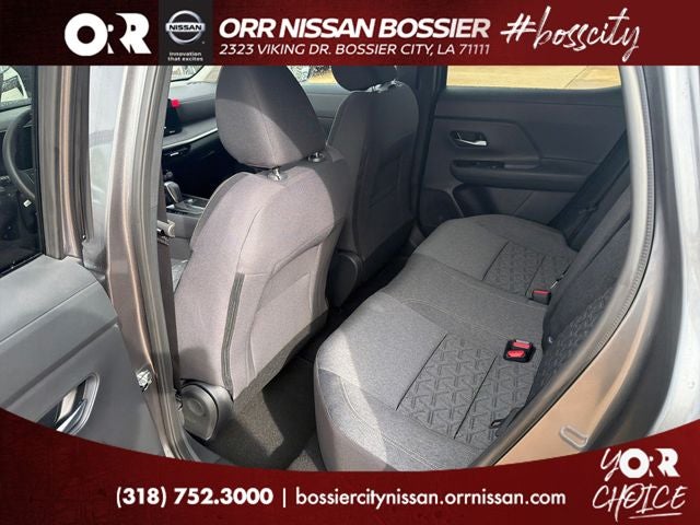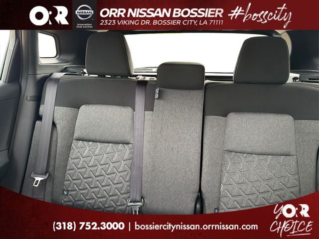 4 Speakers, 4-Wheel Disc Brakes, ABS brakes, Air Conditioning, AM/FM radio, Auto High-beam Headlights, Automatic temperature control, Blind Spot Warning, Brake assist, Bumpers: body-color, Cloth Seat Trim, Driver door bin, Driver vanity mirror, Dual front impact airbags, Dual front side impact airbags, Electronic Stability Control, Emergency communication system, Exterior Parking Camera Rear, Front anti-roll bar, Front Bucket Seats, Front Center Armrest, Front reading lights, Front wheel independent suspension, Fully automatic headlights, Illuminated entry, Knee airbag, Low tire pressure warning, NissanConnect featuring Apple CarPlay and Android Auto, Occupant sensing airbag, Outside temperature display, Overhead airbag, Panic alarm, Passenger door bin, Passenger vanity mirror, Power door mirrors, Power steering, Power windows, Radio data system, Radio: AM/FM/SiriusXM Audio System, Rear anti-roll bar, Rear reading lights, Rear side impact airbag, Rear window defroster, Rear window wiper, Remote keyless entry, Security system, Speed control, Speed-sensing steering, Split folding rear seat, Spoiler, Sport steering wheel, Steering wheel mounted audio controls, Tachometer, Telescoping steering wheel, Tilt steering wheel, Traction control, Trip computer, Variably intermittent wipers, and Wheels: 17 Steel Flex with Full Covers.