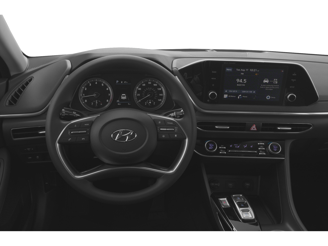 - Radio: AM/FM/MP3/HD/SiriusXM Display Audio -inc: 8" color touchscreen, 6 speakers (2 front door mounted speakers, 2 tweeters and 2 rear speakers), integrated Bluetooth®, Blue Link connected car system, Apple CarPlay, Android Auto and USB