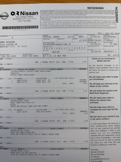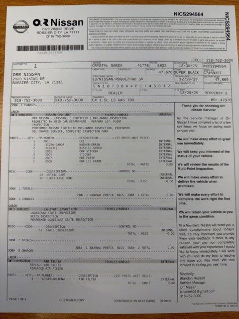 - Vehicle Name: Nissan Rogue